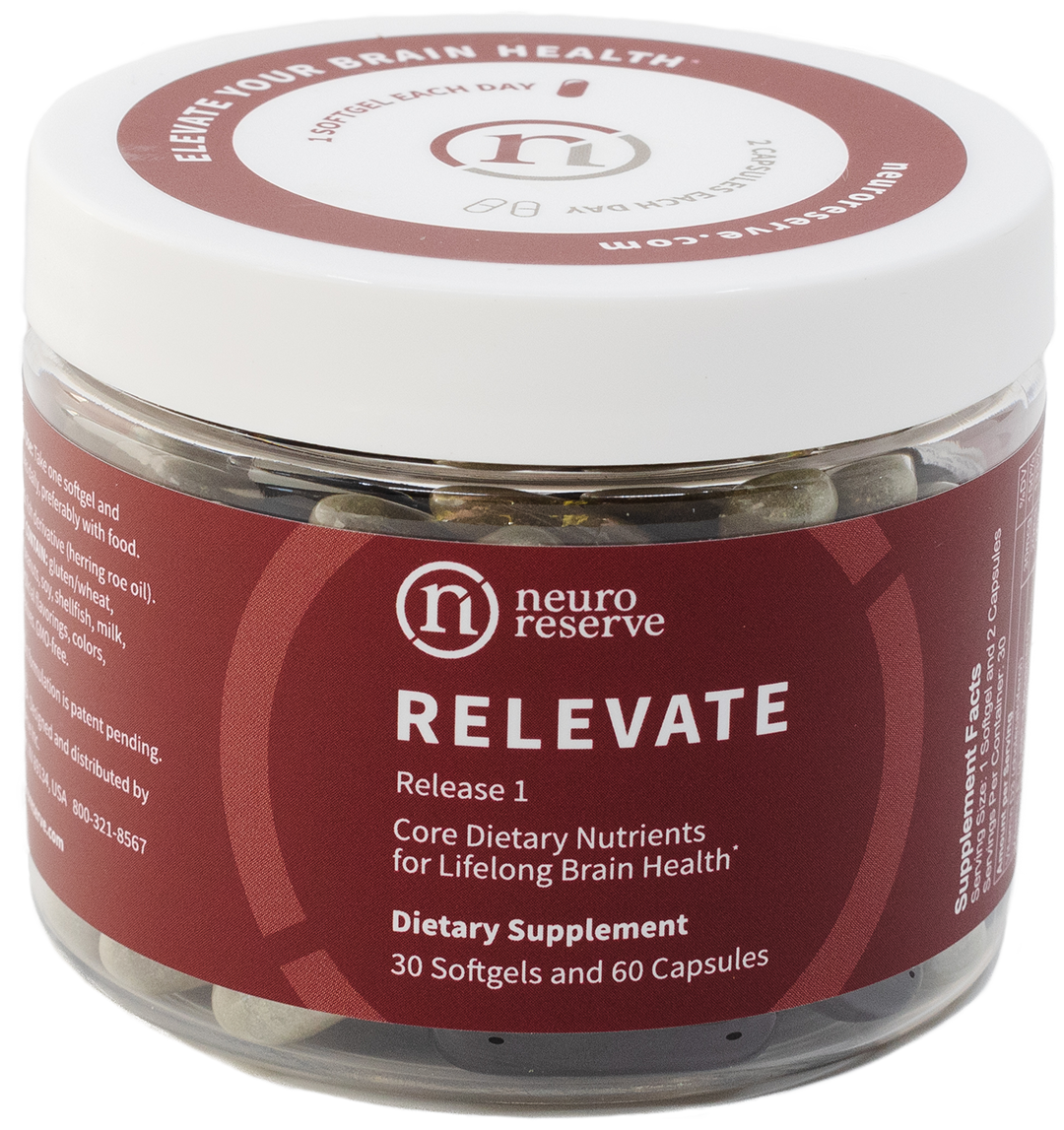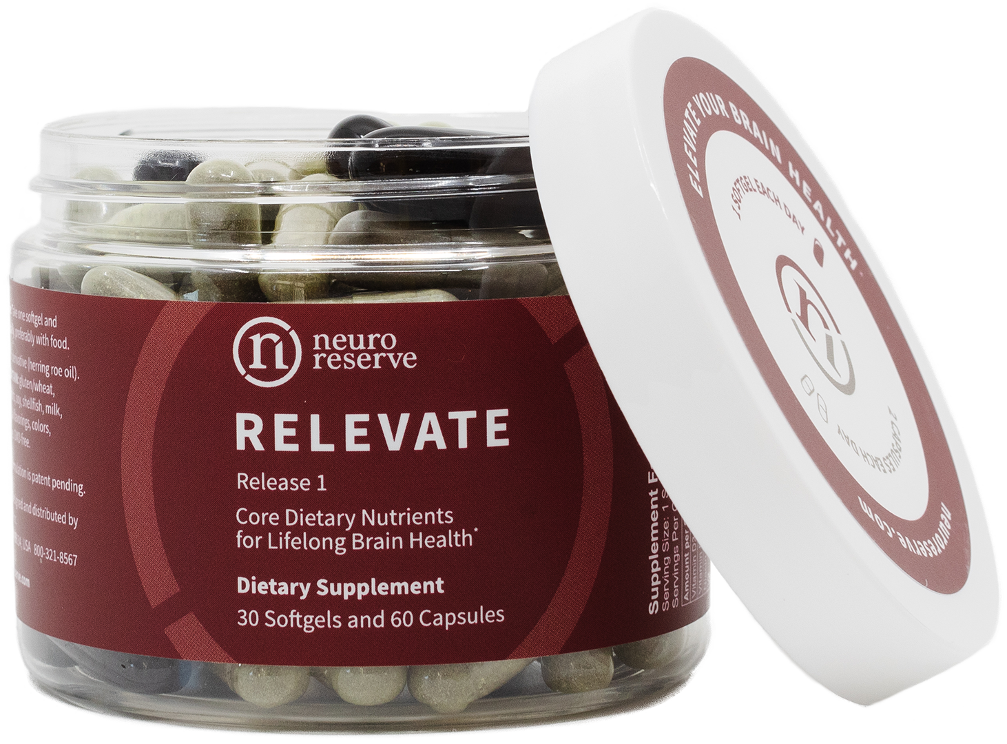 - RELEVATE brain supplement includes a proprietary blend of 17 nutrients that our research identified as critical targets for lifelong brain health. See all the nutrient details here.