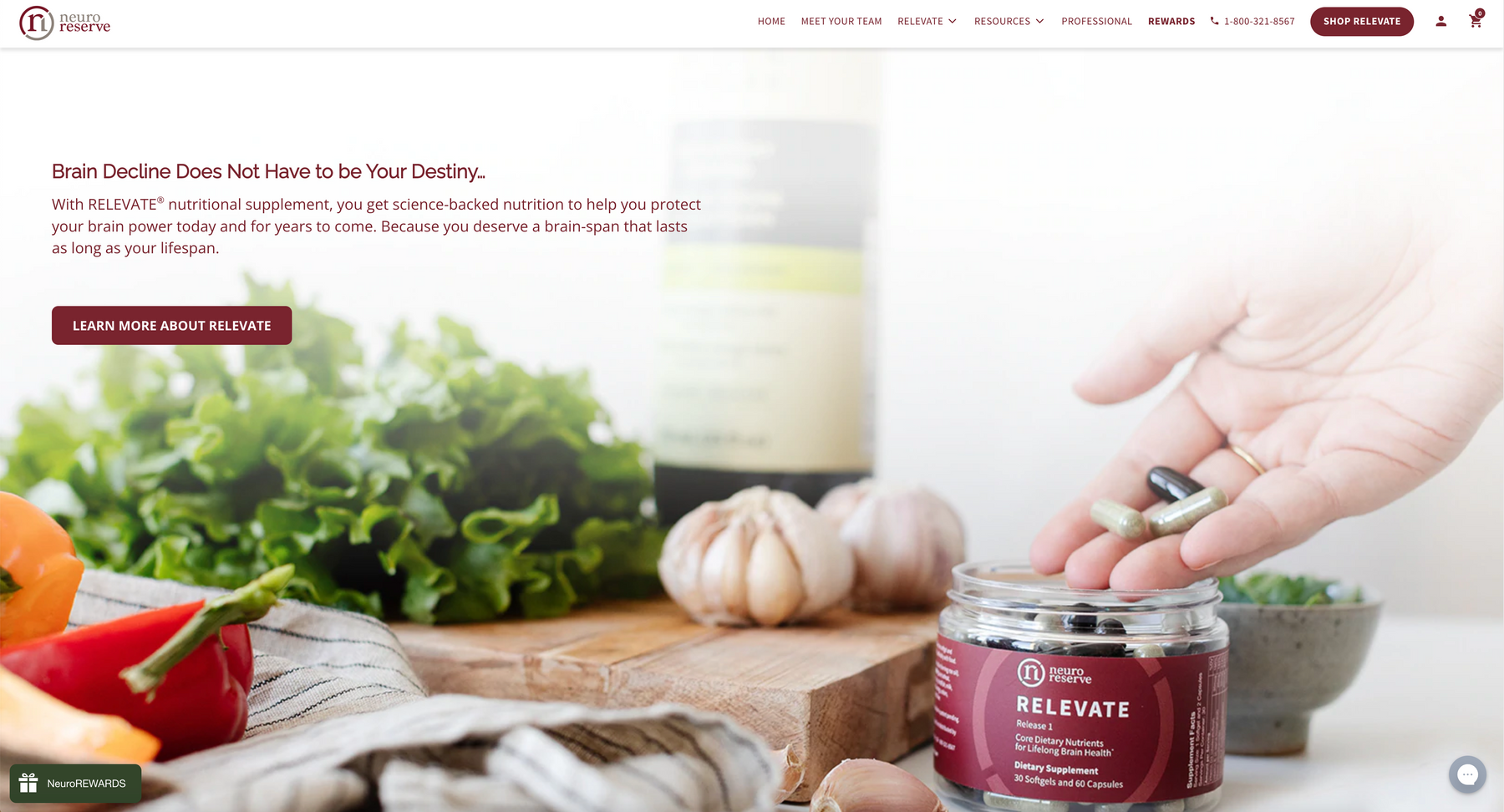 Introducing NeuroReserve’s Loyalty and Rewards program. We really appreciate your commitment to brain health and want to thank you for choosing RELEVATE. With NeuroREWARDS you can earn points and receive exclusive rewards. You can also share the gift of brain health by referring friends to try RELEVATE. It’s free to join and easy to get started. Create an account and start earning and sharing today!