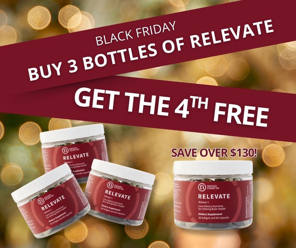 RELEVATE is the first and only nutritional supplement designed specifically upon brain protective dietary patterns, like the Mediterranean diet and MIND (Mediterranean-DASH Intervention for Neurodegenerative Delay) diet, developed by Rush University Medical Center. RELEVATE closes gaps in nutrients critical to maintaining lifelong brain health that most of us don’t get enough of in our everyday diets. RELEVATE is a regimen of 1 softgel and 2 capsules daily, containing 17 nutrients in specific ratios, doses, and high-quality forms to target the brain. RELEVATE is a new and powerful tool to help achieve comprehensive dietary health for our brains. It is designed, developed, and patent-pending by NeuroReserve.