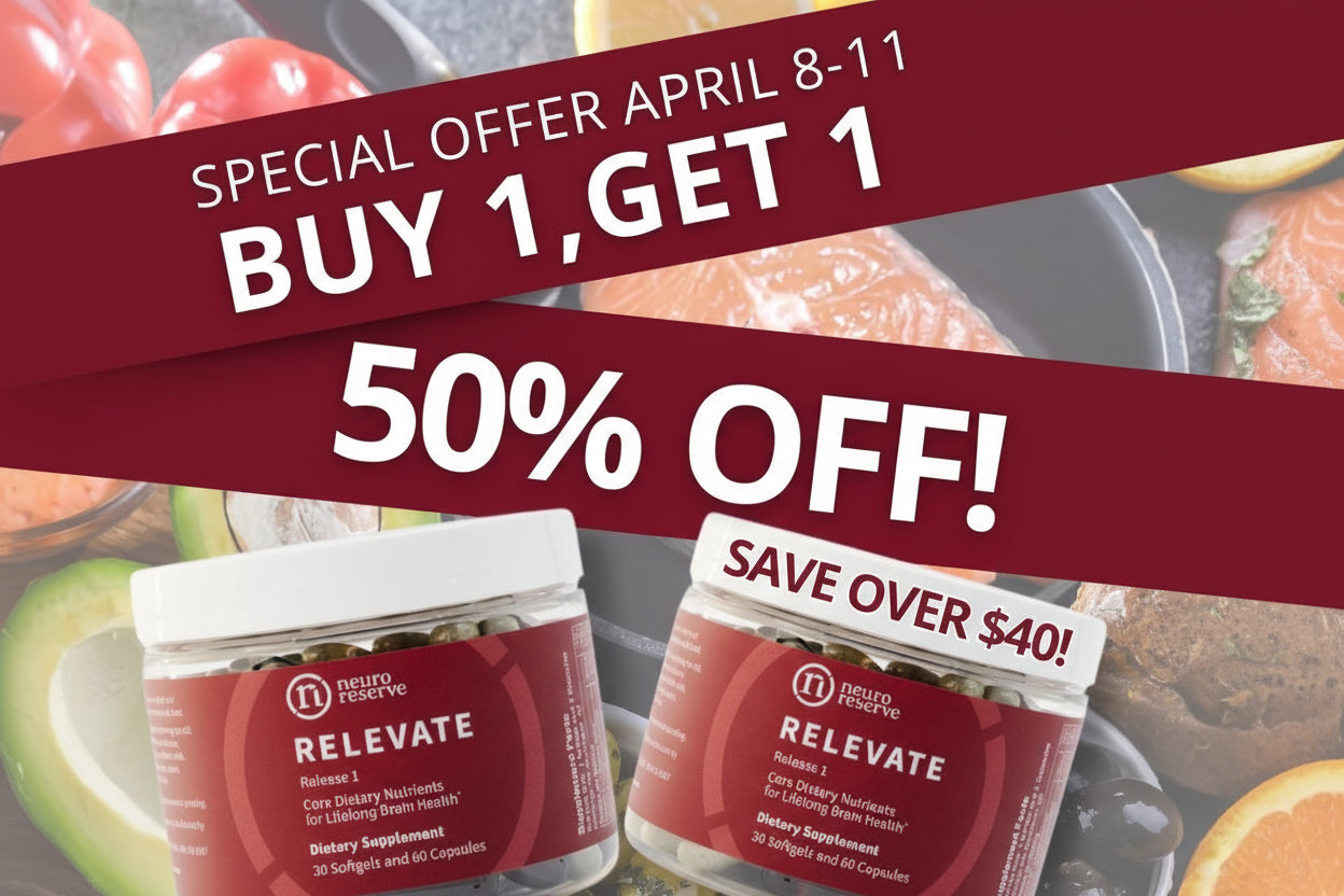 For a limited time, buy one bottle of RELEVATE and get the second for 50% OFF, for on-going nutritional support with 17 powerful brain nutrients. This offer is only available now through April 11, World Parkinson's Day.